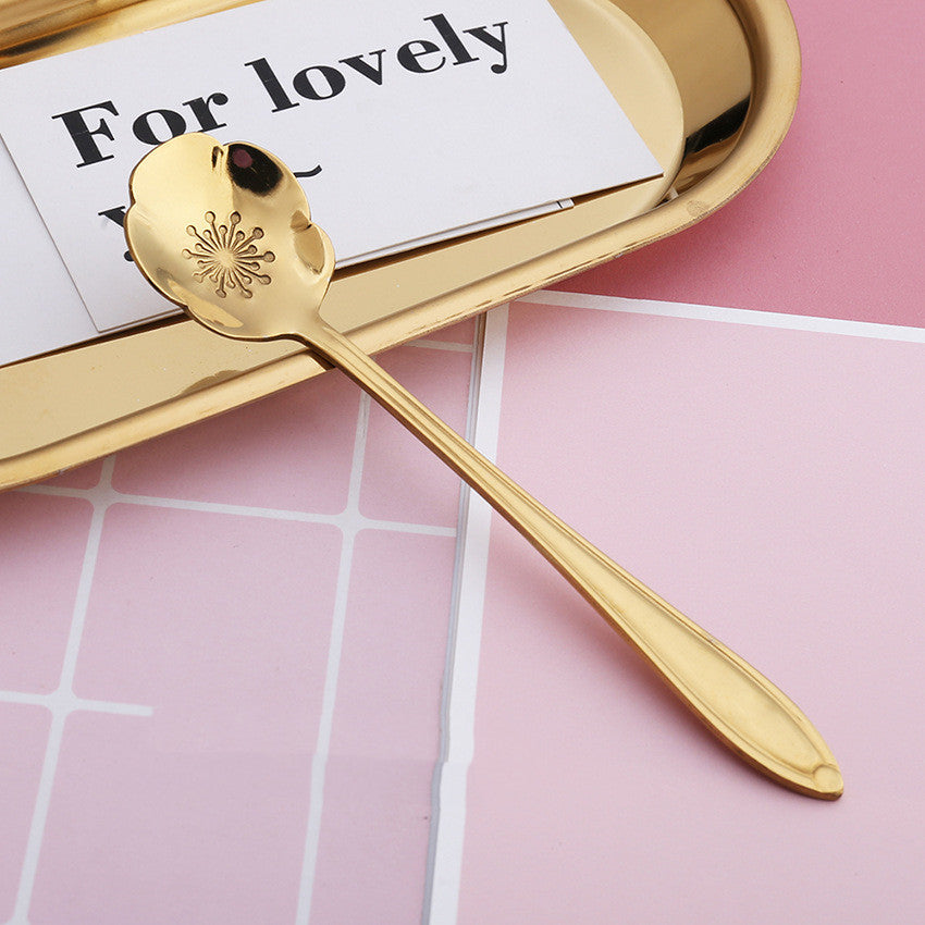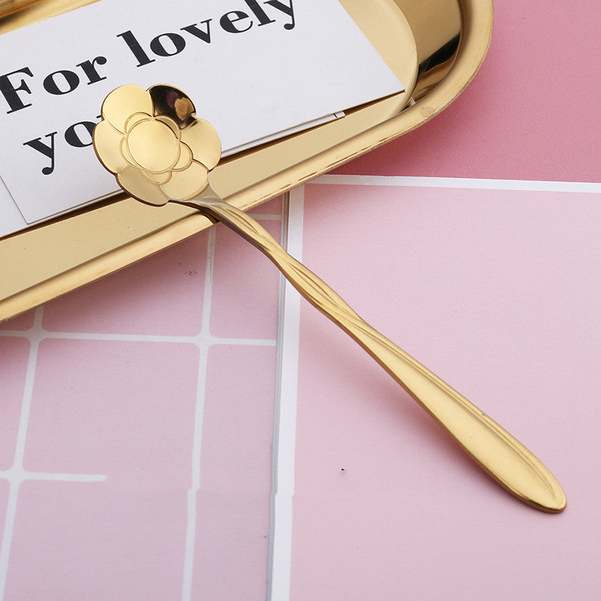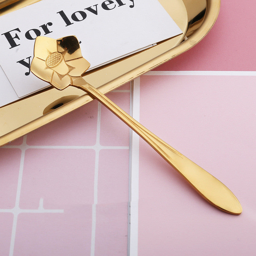 8-Piece Gold-Plated Flower Coffee Spoon Set - Stainless Steel Teaspoons