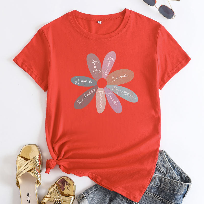 Bright Daisy Graphic Tee - Casual Round Neck Short Sleeve