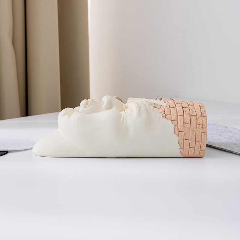 Add a bold touch of art and humor to your home or garden with this creative resin flower pot. Designed with a dramatic sculpted face and cracked brick detail, this planter doubles as a conversation starter and a unique decorative piece.