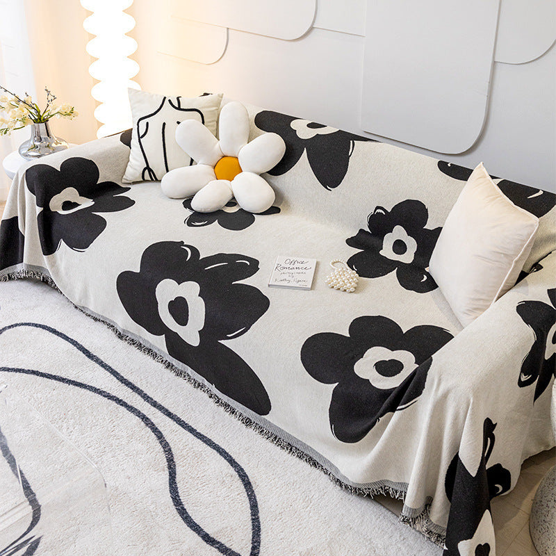 Floral Chenille Sofa Throw Blanket - Double-Sided Decorative Couch Cover