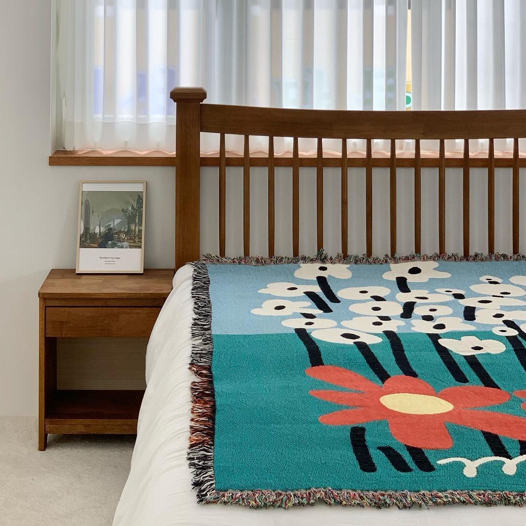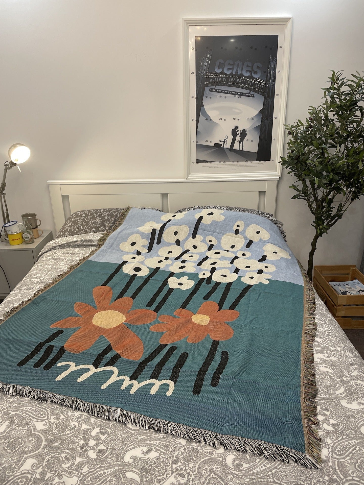 Nordic Floral Tapestry Blanket - Retro Daisy Sofa Throw & Wall Art