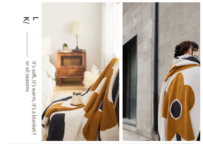Nordic Semi-Velvet Knitted Blanket - Soft Floral Winter Throw