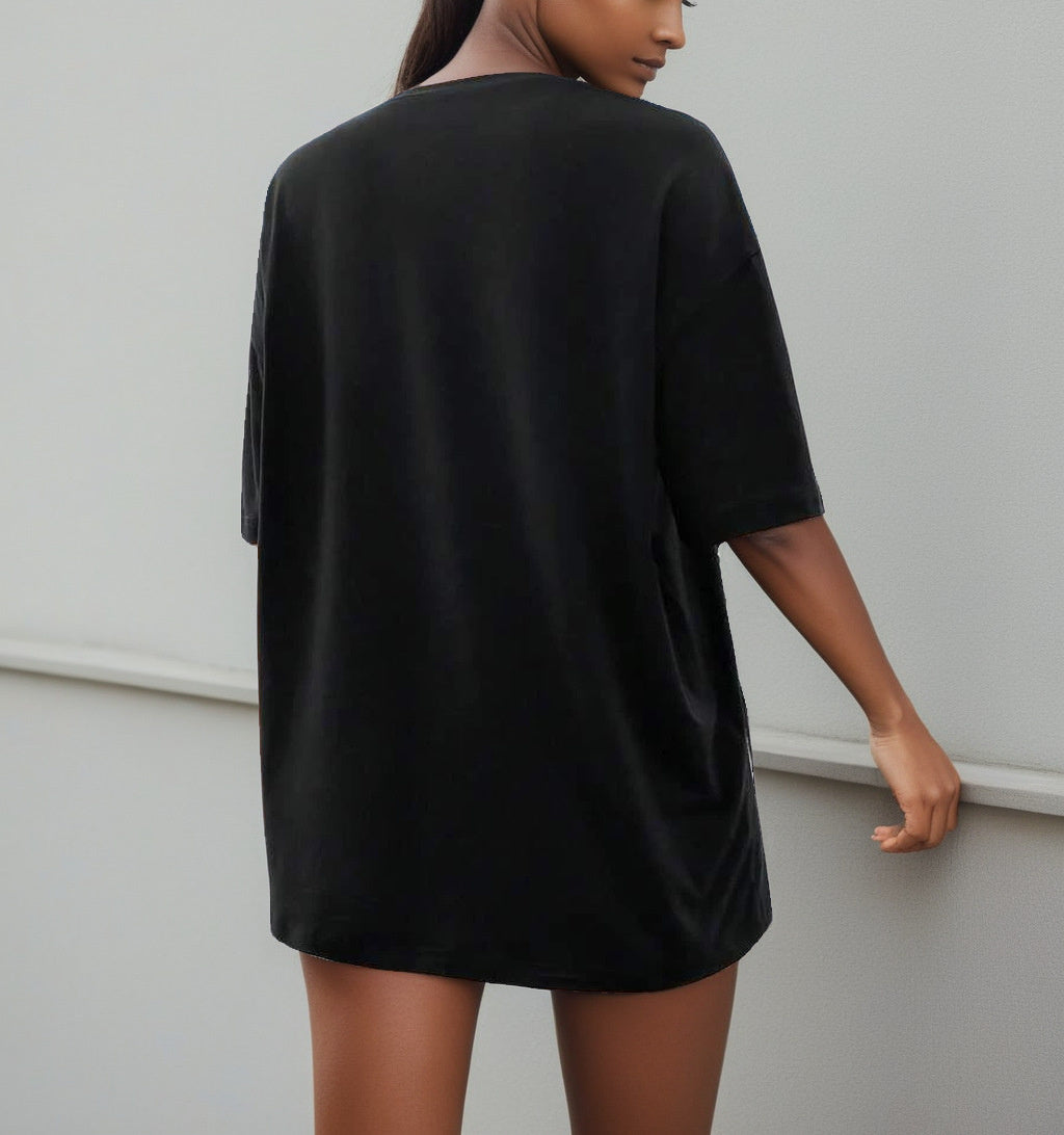 Made from a soft and breathable fabric, this short-sleeve tee is casual enough for everyday wear but stylish enough to pair with denim, shorts, or even layered for a laid-back streetwear look.