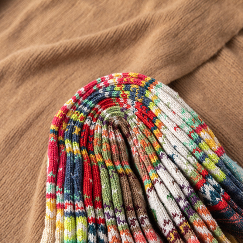 Step into comfort and color with this 5-pair set of women's knit pattern socks. Designed with playful vintage-inspired patterns, these cozy socks bring warmth and style to your everyday wear. Perfect for lounging at home, layering with boots, or gifting to someone special, they're as practical as they are fun.
